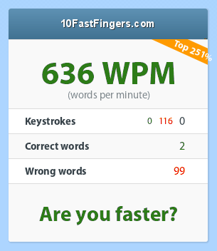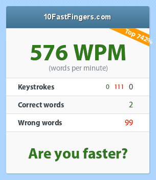 my e key is broke so that made me keep making mistakes and slowing up ha