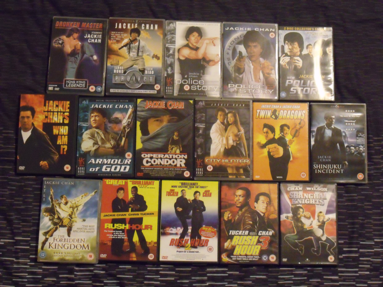 Here is my Jackie Chan collection; also a work in progress. I want to get every film of his that has been released over here, but it is quite hard because some of them are fairly old and difficult to get ahold of.
