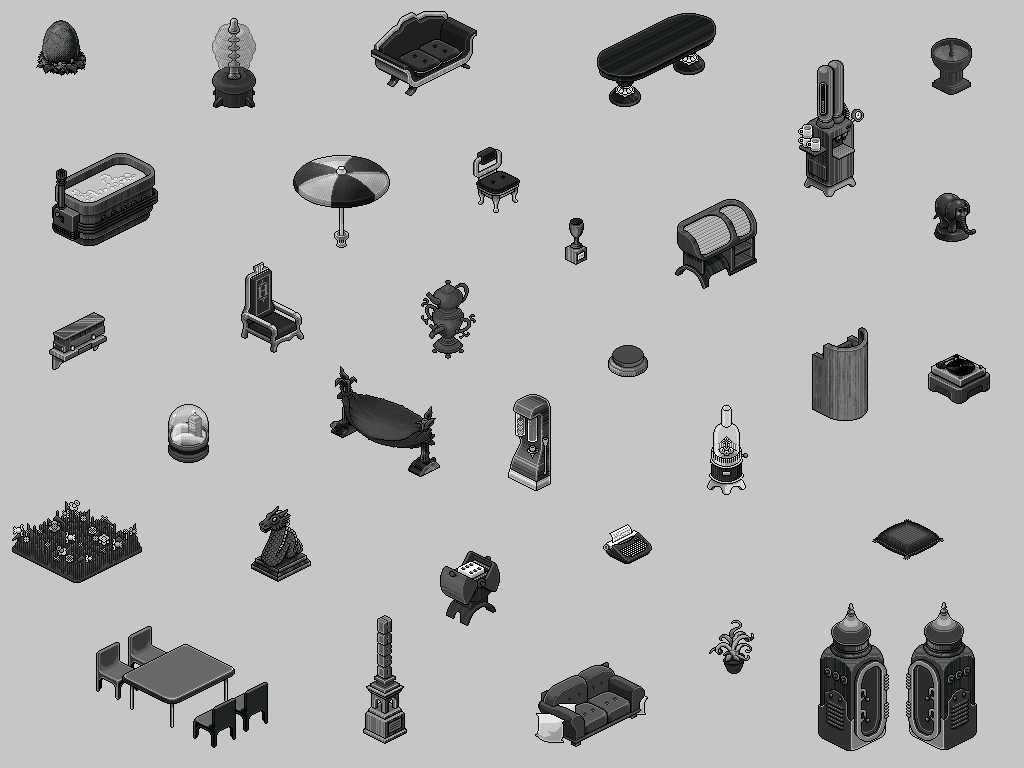 when compared to grey scale thanks to inflammable for grey scaling . the following were grey scaled the mocha, speaker, ice cream machine, hologirl, and the word habbo on the habbo trophie were grey scaled![]()