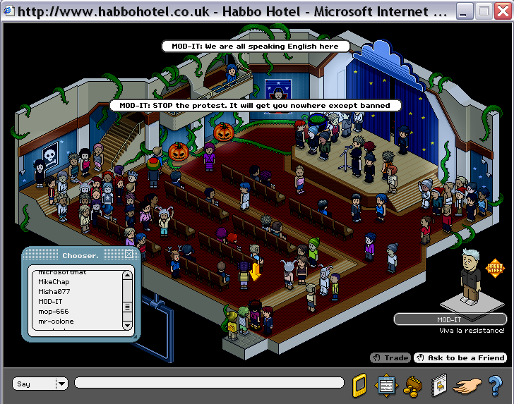I'm in the picture behind the green short haired girl who was in my Casino the other day r**ing people, and soon after that screenie in the Hallway she called FarmerJiles a ***** and got banned. :rolleyes: