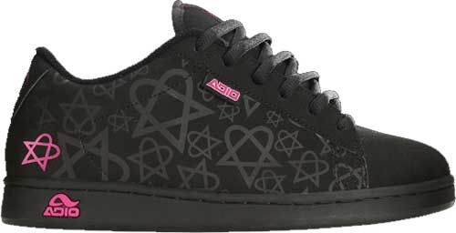 black skirt with a black skull & cross bones on it & ribbon on the back ^_^