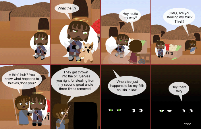 Abel: Adam's second son, he's everything a father could want in a child: strong, obedient and hard working. His favorite past times are beating up his brother.