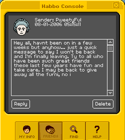 PweetFul has just annouced that she will be leaving habbo. Goodbye to a nice and respectful habbo.