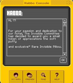 Habbos who've been on SG for a long time and bought credits before got the pillow.