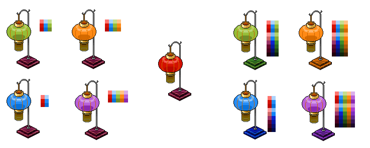 The ones on the left are just lamp recolours, the ones on the right have the stands recoloured to match...I wasnt sure which one I prefered so I put both on(All colours done from Scratch)