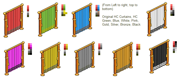 There is a new V11 furni about, Habbo Curtains which is a new HC Gift. I decided, since it hasn't ever been recoloured before - why not have a goSo I did, and here is the result!
