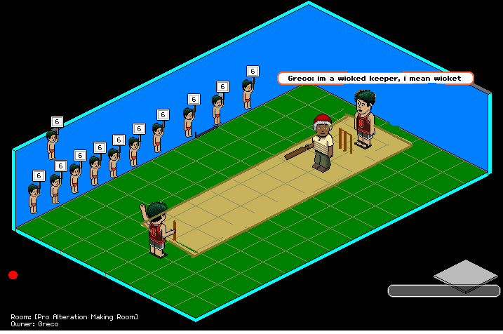 im wicket keep nd bowler nd pleke is batter (he got a 6 - he hit the ball into the black area and the crowd went wild)