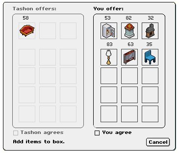 I think the tradebox should be much larger, and the photo's shouldent go in seprate boxes, This is really fustrating as I Mostly get scammed in BIG deal'sHere's a screenie.