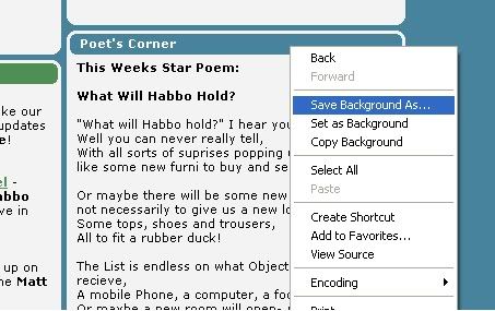 Doe's anyone remember when the old habbo layout was around and you couldend steal there orange layout? it would just save the background. Well when they welcomed the new layout you was able to take the content and layout, like pratically steal all the picture's.. Yah well now you can't save the content boxes it will just save the picture behind it.. I don't think this was posted. It's been here a while. Thought Ill point it out.