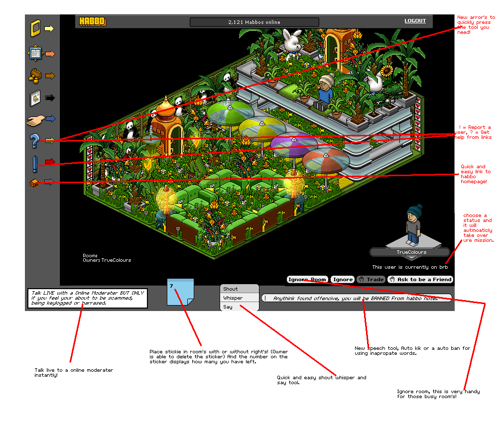 Much improved, the arrows are a nice touch and lovin' the status, it's much better than people shouting at you, it needs a button though like the ignore one ,but change status. I prefer this one by far, but it still is a little crowded. Nice one 8.5/10.