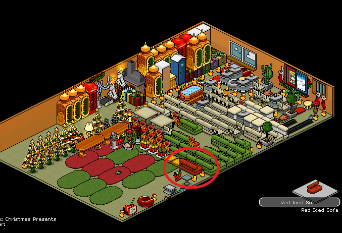 It's the red iced! Although the room has a password on it.. I managed to get through a different wayAlthought it's a secret you know :eusa_danc The room is owned by Lost_Witness and is called "Christmas Presents"