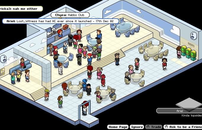 sorry but cuz im *sooo* clever i forgot to take a screenie. they werent there long anyway, but yeh, Helkat was there first trying to make ariel say summat..