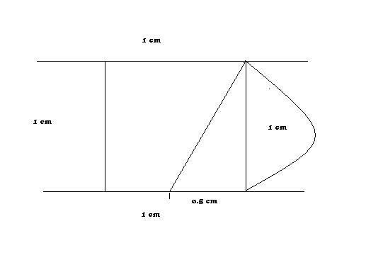 -Draw a quarter of a circle starting from the top right hand corner, with a radius the same as the opposite straight line (the line from the midpoint to the top right hand corner).