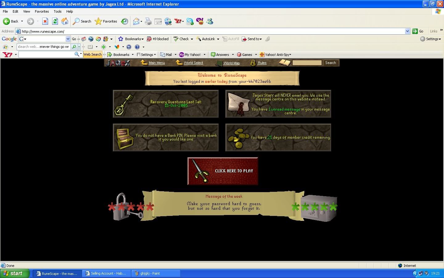As above im buying an abysal whip for a lvl 77 account, i'll go first trusted people only pls. account had recovs set in 2004 and i cant remember what they are and theres no bank pin and it has 21 days left of members.