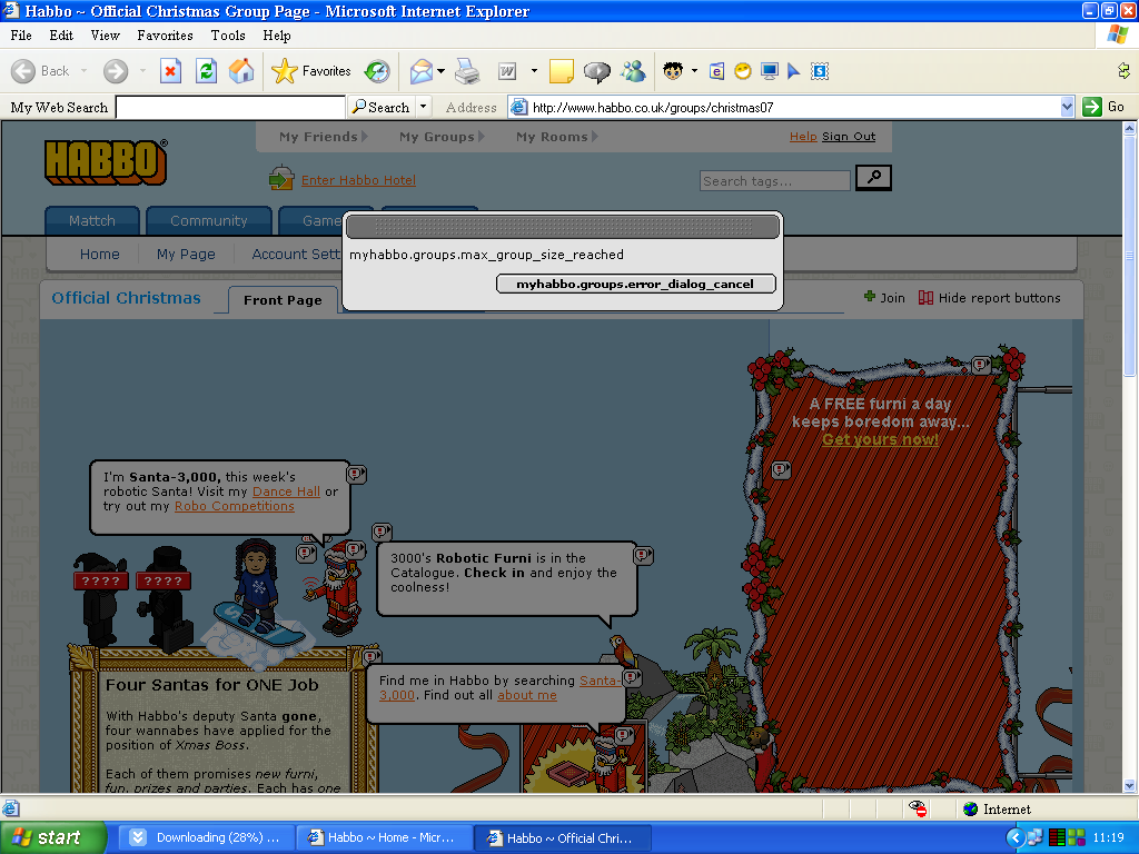 "myhabbo.group.max_group_size_reached" is like in a database which has a caption like "This group is full" or what ever. Whats happened is the page hasn't loaded fully, or the caption was deleted. Its only with the Habbo Homes and Groups where we get these errors as they take so long to load.