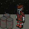 This is an alteration of the leader of a group in star wars called the mandalorians. Its not exactly the same because I had requests from the person I was alting for so here it is. The thing he is olding is called a Mythosaur Axe.