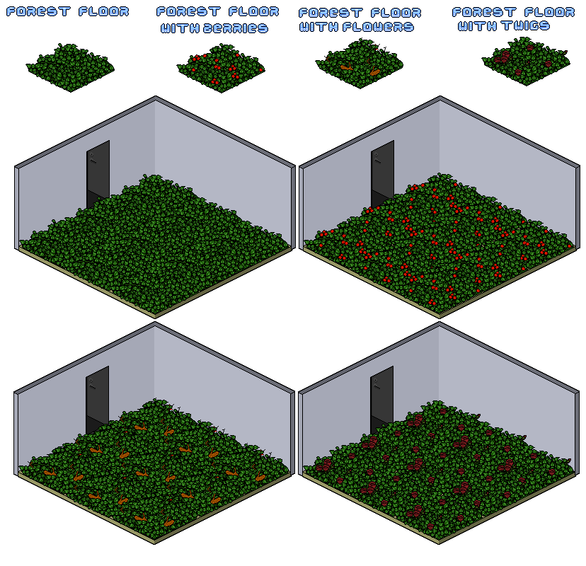 Habbo needs more patches :]. This ones like the habboween patch thing, when you turn it things go on it, was gna do a rock one but i couldnt find a picture of the rocks. So, i did flowers, twings and berries as extras on the patches :]. They don't like 100% cover the floor in places, but these places aren't too noticeable. i hope. enjoy btchz. x