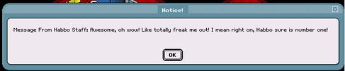 Habbo Staff seem to have gone crazy. They sent out a seemingly pointless alert saying: