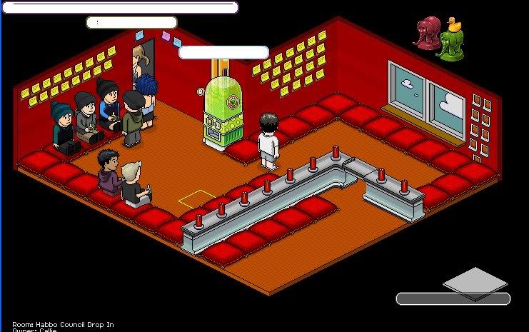 I saw people carrying Habbo Cola around the room with them but i didnt see the green thingy as i left bout 5 minutes after that!