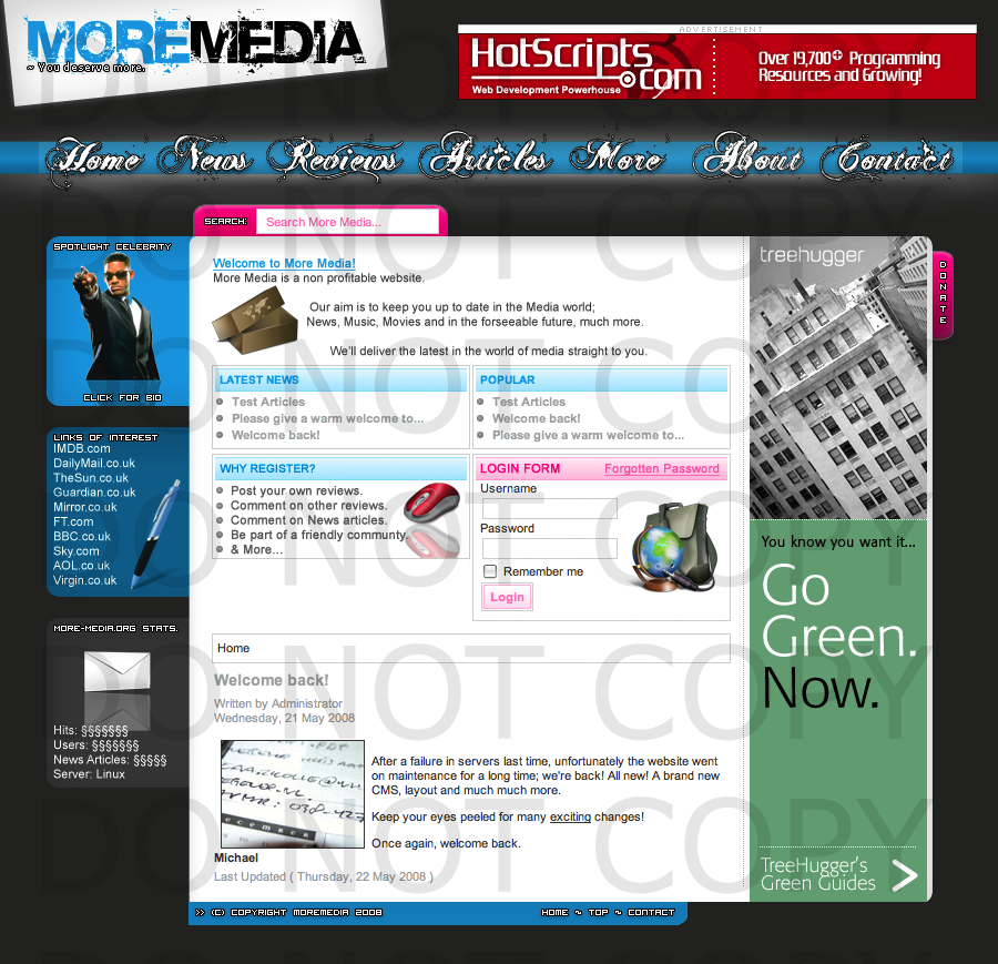 The layout looks unfinished, spend more time on it. You might wanna add a few effects to the white box behide the logo, and the three boxs on the left could do with some, finally as other people said the font you've used for the navigation isn't the best choice.
