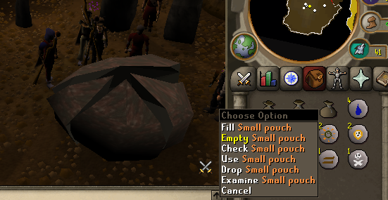This strategy is basically the same as the first one but instead of using an Amulet of Glory to teleport to Edgeville to Bank you will just use the Ourania Teleport again and bank using Eniola. The catch is Eniola will charge you 20 of any rune to access the bank. If you are using Rune Essence Pouches then you will have to bank twice which will cost you a total of 40 runes per trip. It adds up, Edgeville may take a few extra seconds, but it will save you some cash.
