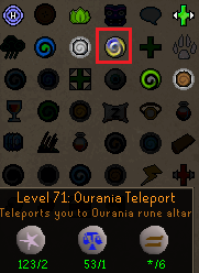 2. Teleport using the Lunar Spellbook to the Ourania Alter, this spell requires 1 law runes 6 earths (you don't need because of earth staff) and 2 astral runes with a magic level of 71 or higher. (See Pic Below)