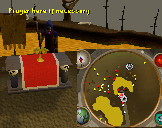 3. Make your way up the path to the Zamorak Alter and recharge your prayer if necessary.