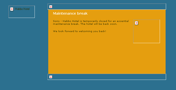 i'm on habbo and i just got disconnected and when it refreshed it said maintenence brake! so i went back to the home page but all it showed was this:
