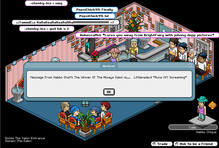 wow the salon is changed around.. oh sorry what is that ah yes littleredevil won...