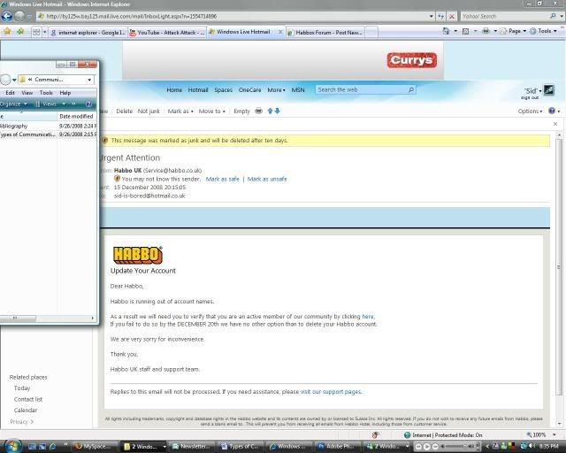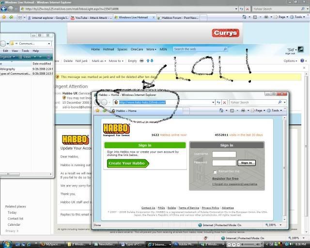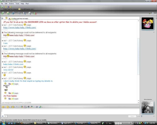 So heres the story, some guy added me and you can see the e-mail by looking at screenshot 3. Suspiciously he knew what Habbo account I used and said he got my e-mail from some 'list'. Then he started saying about how Habbo is going to delete accounts and random blah blah that idc about and said he got sent an e-mail in his junk mail. Ok so I took a look and found the so called mail he was talking about. Then I clicked the link (which is harmless as I know so far) oh and look a weird link with a Habbo page. Obviously he was trying to get my account, although idc anymore as I have pretty much quit. But still this is a lame attempt at getting your account. Just sending on the message to people who might come across the guy. Make sure you look at the link before typing your details. Oh and thanks for reading.