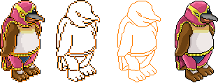 When you enlarge furni/habbos/penguins? than you must add like 200% more detail so this means more fluent shading no dogey lines etc. Cause its bigger now so pixel errors get spotted faster nowJust try to shade them like mr Voice did.