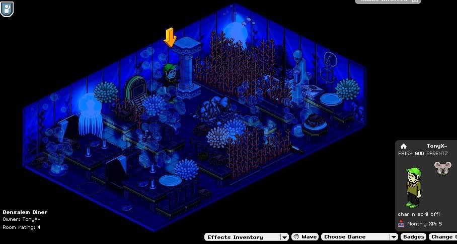 And heres the underwater version, which i went manic at, i love the way its all crowded and it looks like the sea has been over it loads and moved everything about. also i kept a couple of the original furni like the chairs near new furni to show its still the same but changed if you know what i mean.