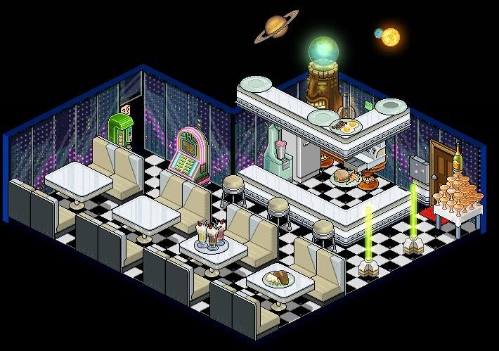 And here is Bolts Diner version 4. I seem to like having a diner, and change it regularly,(you can just about see some previous versions in my sig) this time I opted to make it a bit more modern with some funky lighting