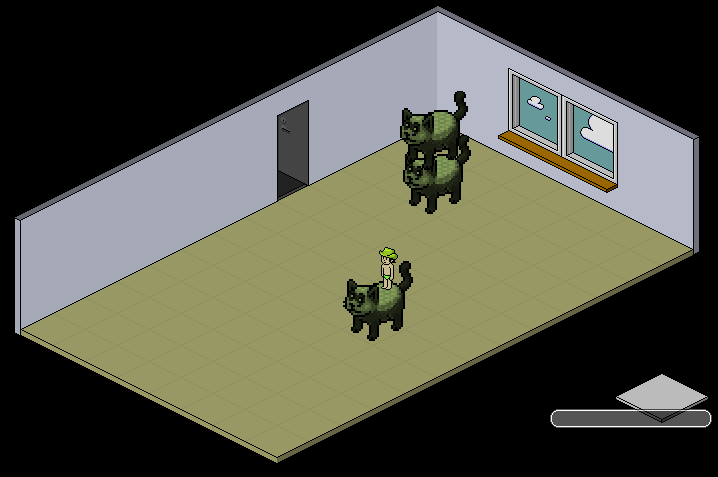Nice idea but make the cats Habbo size to make it look better. You have this huge cat and a tiny person.![]()