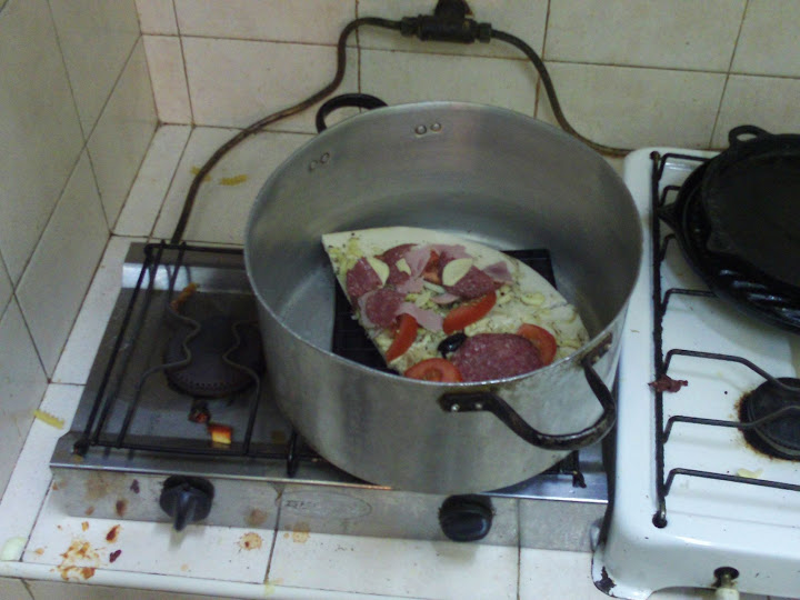 First we found a large pot which the the pizza base could fit into. Then we