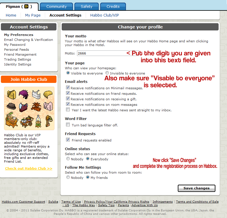 Hey there, i just completed the quest thing and i need to sign up to habbox to send my entry thing in, when i try and sign up i put my username in and it finds me, it then gave me my number code thing to put in my motto which i do, i then click next but then it says "Please enable your Habbo Homepage so we can see your motto!" as well as saying "Please add the numbers provided to your Habbo motto, to make sure emmzbabe? is really you." in the top right hand side, even though i have done?