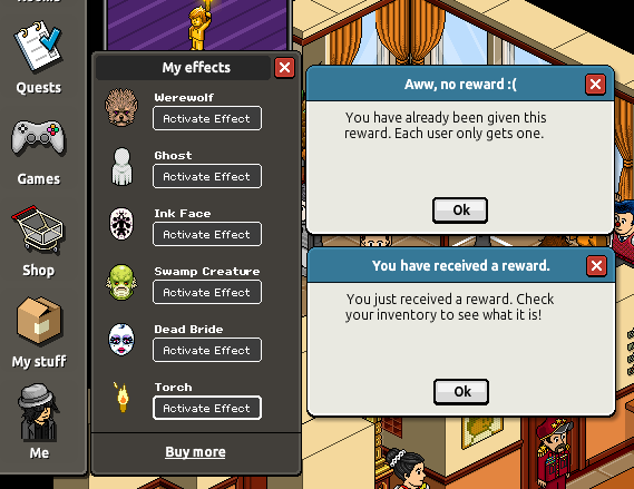 I went into the welcome lounge, and there was this odd 'block' where people stand to make themselves higher.. So i stood on it and started to dance, as soon as I done that it went away lol... managed to get an image: