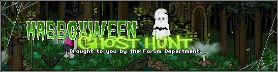 With Habboxween events running all week, we can't have them ruining things! To help us get rid of these pests we need you to locate them for us. Luckily the locals have agreed to keep an eye out and send us any clues they can each day until the 4th November. Each ghost will be present somewhere around the forum, but could decide to wonder elsewhere after 24 hours!