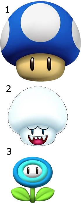 Recently, I've started playing on my Mario games again but unfortunately I made the mistake of letting my boyfriend join in and play alongside me as another character. We're not doing well on our voyage to save Princess Peach though due to him attempting to kill me by throwing Koopas at me or pushing me down holes to my death. However, to help us we can obtain power ups such as the ability to become a penguin or a giant and for this competition I have placed 3 images below all showing a power up available on Mario games and I want you to tell me what super power each one gives you; if you think you have all the answers PM HabboxComps with them!