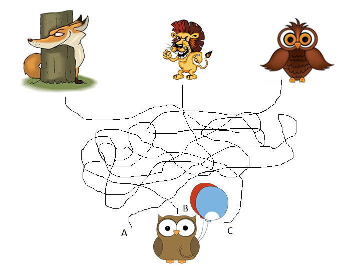 Owly the owl was walking home late one night after being in a party. As she was walking she realised that she had taken a wrong turning somewhere and ended up in a forest. In the forest, Fred the fox and Lesley the lion are waiting for her, therefore she needs to find her way home before she is eaten. That's where you come in.