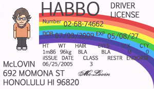Before I go on holiday I will need my provisional license to act as a form of ID as I really don't look 18 years old (or 19 by the time I'm actually on holiday). Last year, luckily, I had my student card and they accepted it, but thinking of ID, it gave me an idea. I see rooms on Habbo called 18+ chat and the like, but there are no forms of moderation to ensure only over 18s are in there. So for this competition, I want you to create your own Habbo driving license - it needs to include a Habbo name, their image and their (fake) age; anything else can be added extra!