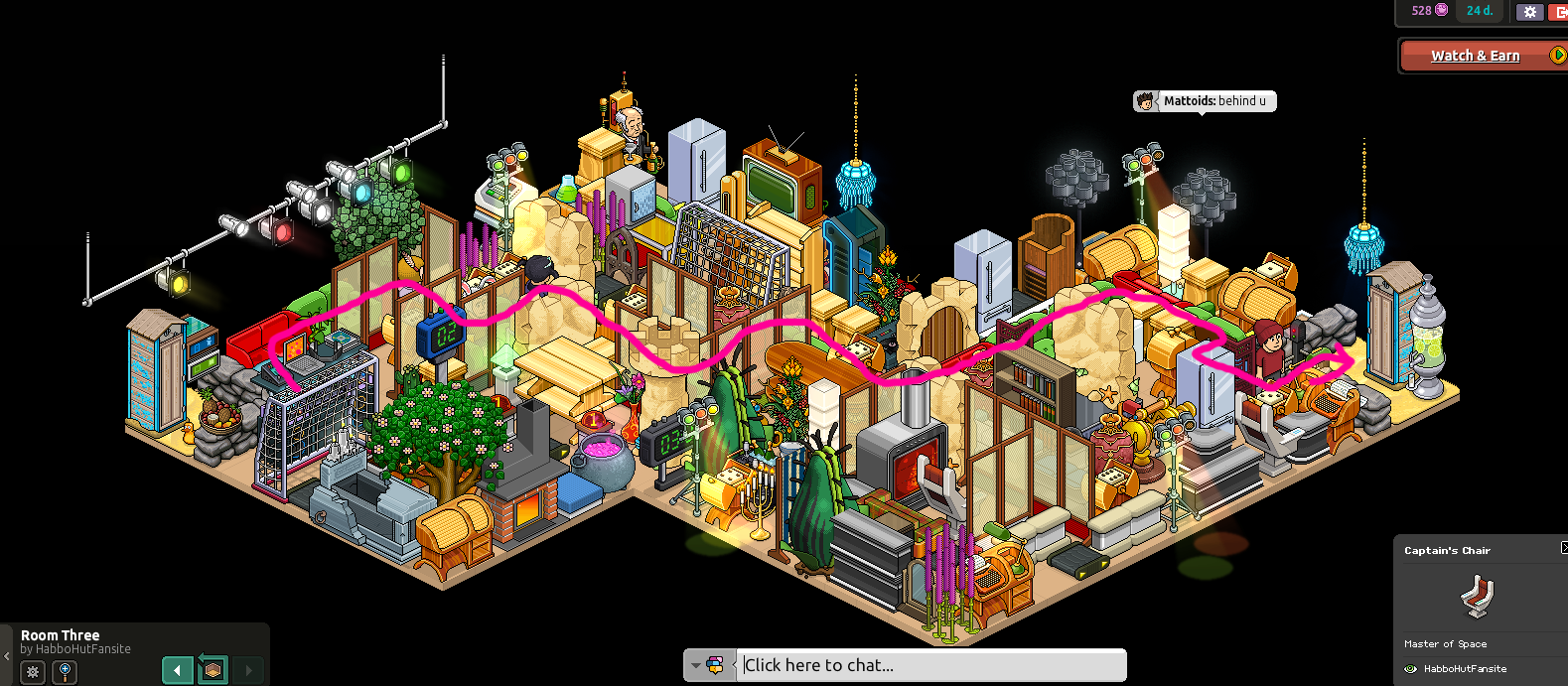 Now the next room is a little tricky, but, a very old school twist for the maze! I like these types of mazes as I find them challenging. This room is a furni maze, where you need to snake your way around the room usding hidden sofas and stools!