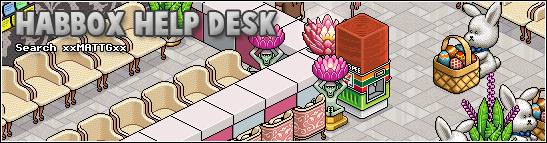 Our helpdesk is one of the community hubs of Habbox, and has been around for years - it's part of the furniture! It always provides Habbo players with the help they need and somewhere to hang out if they desire. Currently, our help desk is managed by Absently and Kellie who has a team of hardworking staff to make sure you get all the help you need (if any)! If you need a place to hangout or help in any way, go on down there by searching Shonly on the Client.