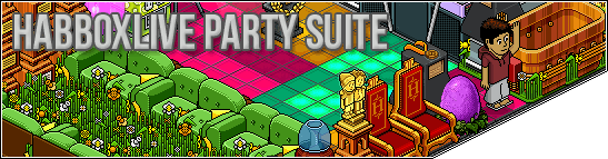 The HabboxLive Party Suite's name speaks for itself really. It's a fun room for you and the DJ to party in during their shows! If you're tuned into HabboxLive and want to hang out with the DJ, or even want a nice, fun room to hang out in and chat to new users, then be sure to search Drewar on the Client.