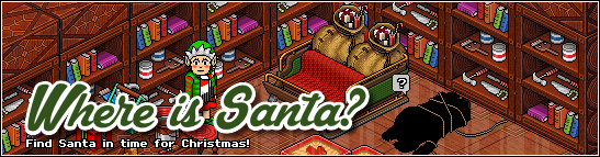 We need your help to find Santa in time for Christmas! All you need to do is search Shonly and goto the Habbox Help Desk and find the hints around the room as to who has kidnapped Santa.