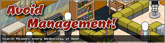 Search Meanies at 20:00 BST to play the first ever game of Avoid Management, one of our new weekly events here at Habbox! Those lucky winners will get the choice of furniture, reputation, tokens or a sparkly new raffle ticket. The player who wins the most times will also win the Weekly Event Award on the forum.