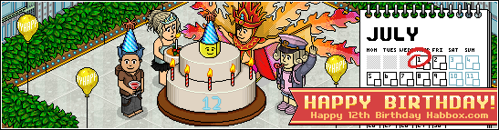 As part of Habbox's 12th Birthday celebrations, the Events Department will be running events for 12 hours straight, from 12pm through to 12am! During these events, all forum related prizes will be doubled, so that means double tokens, double reputation and double raffle tickets! If that isn't reason enough to come along to the events, then surely the mixture of hosts and event types we have lined up will be - you can find out what events we have going on below!