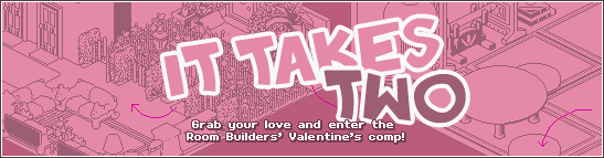 At 8pm, Saturday 13th February, the Room Builders will be hosting a live competiton to see who are the best Habbox couple at building! At the start of the event all couples will be given the same task, to build a room that fits a certain theme (we won't announce the theme until the start of the event to stop cheating!) Once the theme has been announced you'll get ONE HOUR with your partner to build the best room you can.