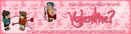First, think of the Habbox member you hold dearest, put your thinking cap on and then write your Valentines message. Then, click here to PM Habbox Cupid, with the Valentine's message you have written and its intended recipient.