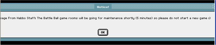 MAny people have had problems with lag and not being able to go into the battle ball rooms, well this morning (around 7.50am) Habbo sent out this alert: